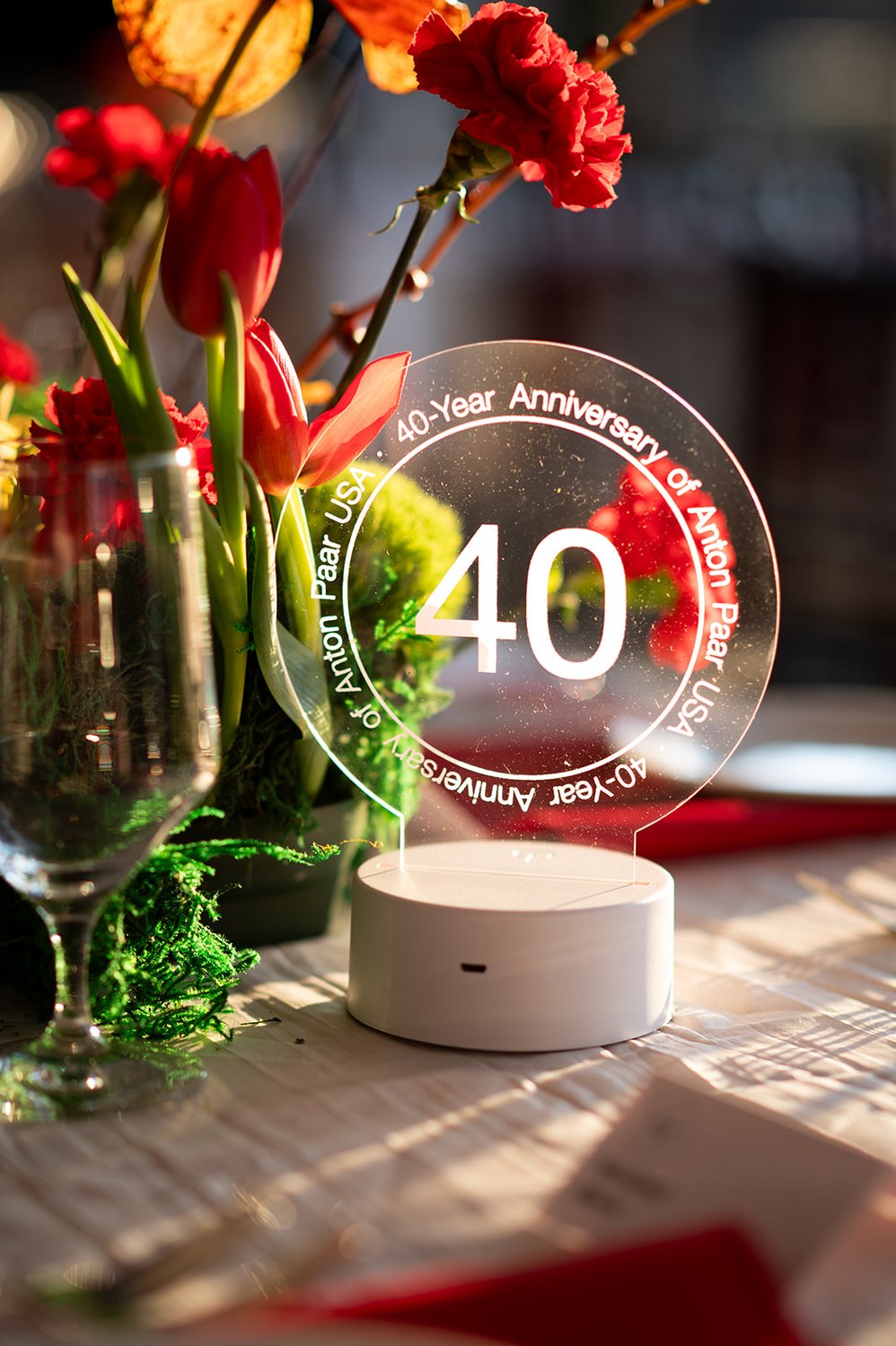 Anlässlich des 40-jährigen Bestehens lud Anton Paar USA zu einem festlichen Abend in der Dover Hall in Richmond, Virginia. Mitarbeiterinnen und Mitarbeiter sowie Gäste kamen zusammen, um dieses Jubiläum zu feiern und jene Menschen zu würdigen, deren Engagement das Unternehmen über viele Jahre geprägt hat.